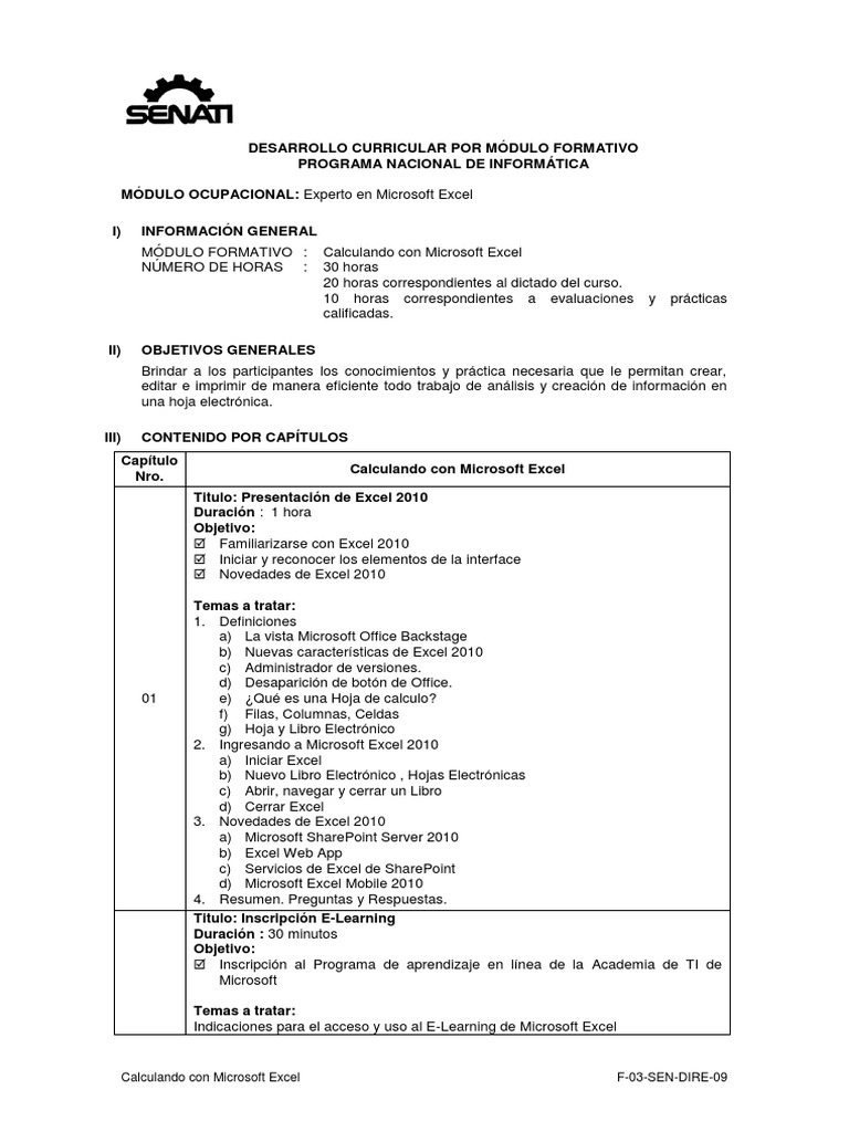 Calculando con Microsoft Excel F-03-SEN-DIRE-09