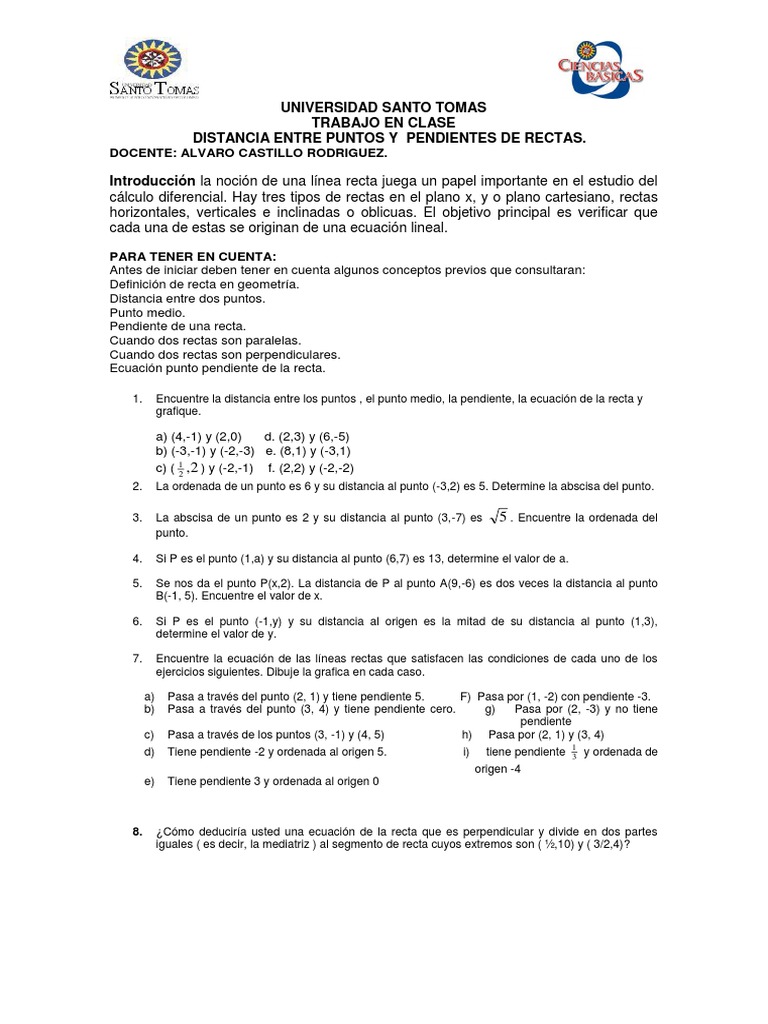 DISTANCIA ENTRE PUNTOS Y PENDIENTES DE RECTAS.