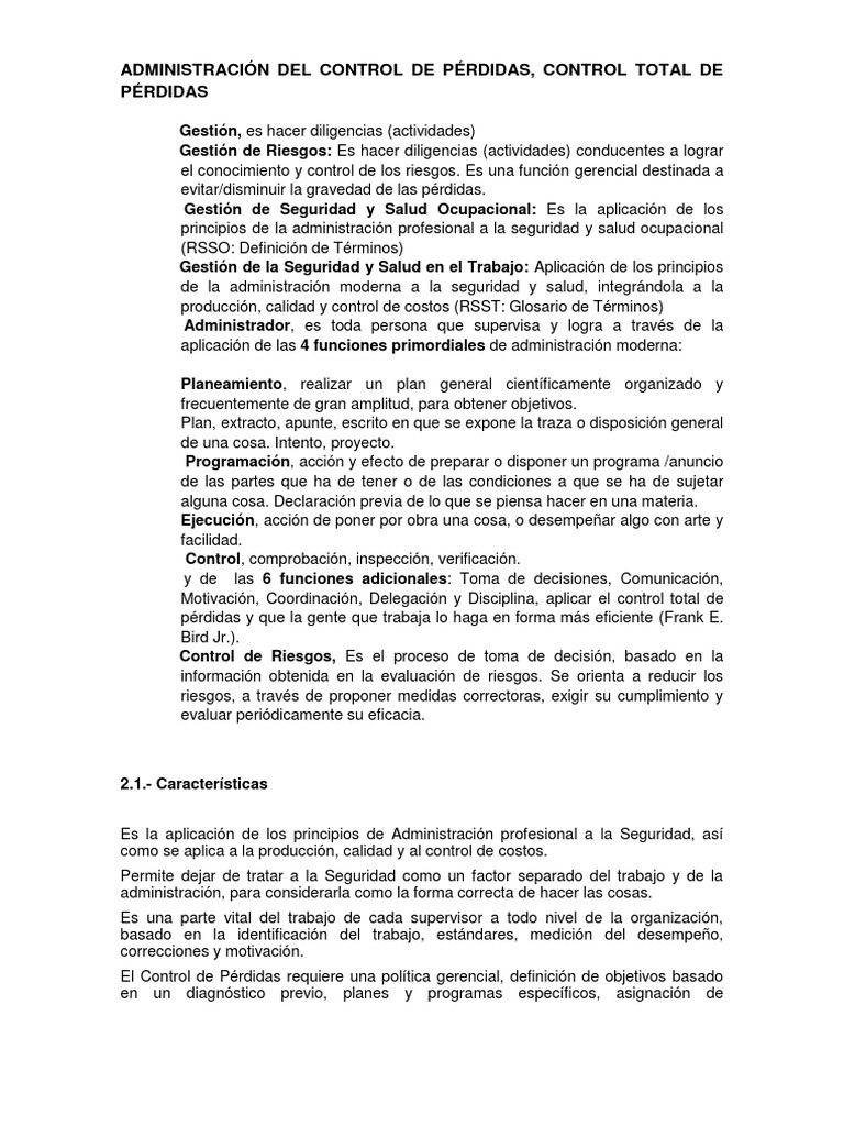 ADMINISTRACIÓN DEL CONTROL DE PÉRDIDAS, CONTROL TOTAL DE