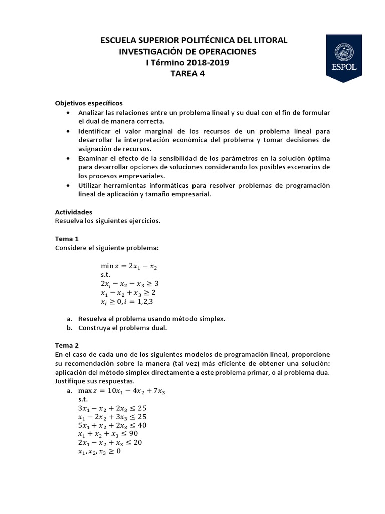 • Analizar las relaciones entre un problema lineal y su dual con el fin de formular