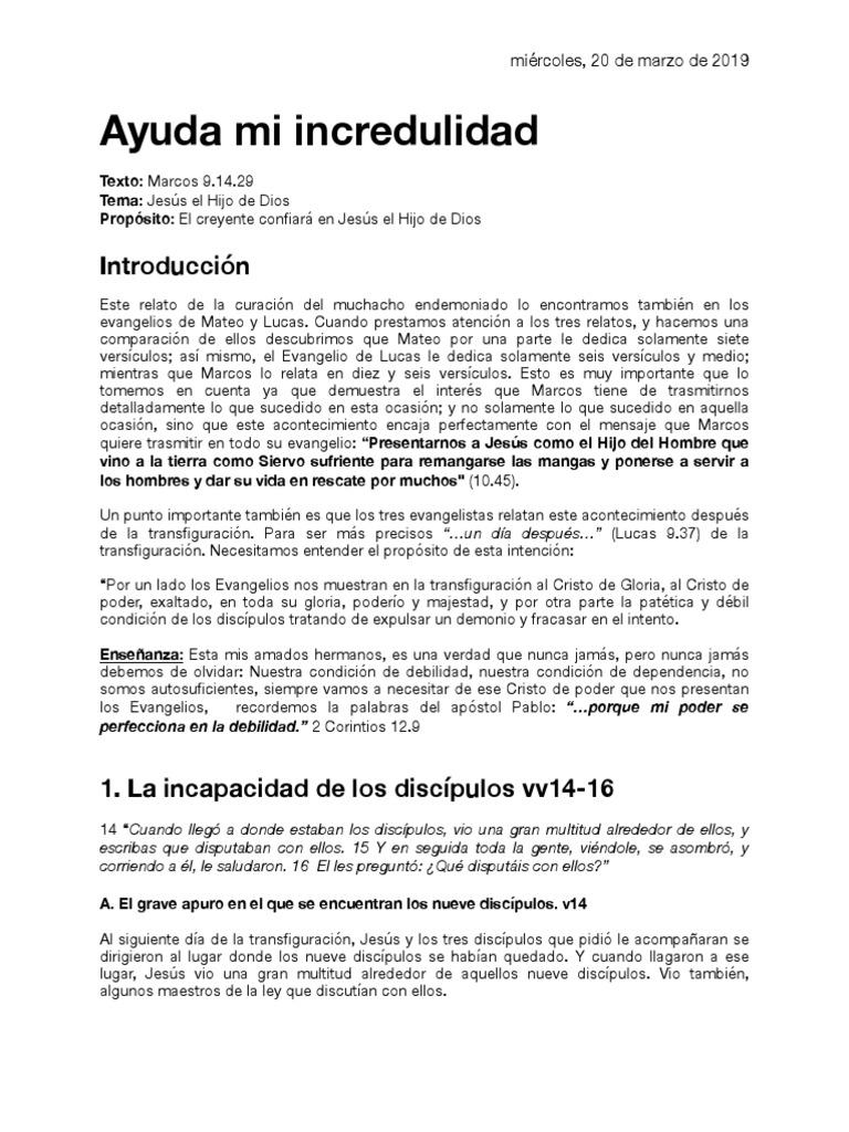 débil! ¡Ayúdame! “…¡Sí, creo, pero ayúdame a superar mi incredulidad!” (NTV)