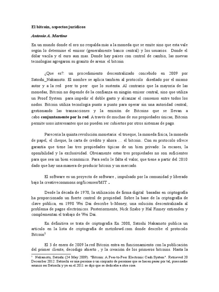 Aspecto jurídico: en general puede decirse que el bitcoin se mueve en un vacío