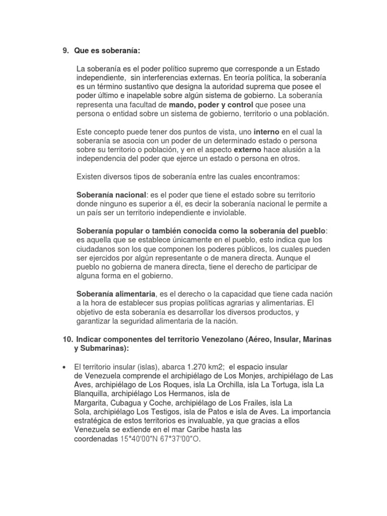10. Indicar componentes del territorio Venezolano (Aéreo, Insular, Marinas
