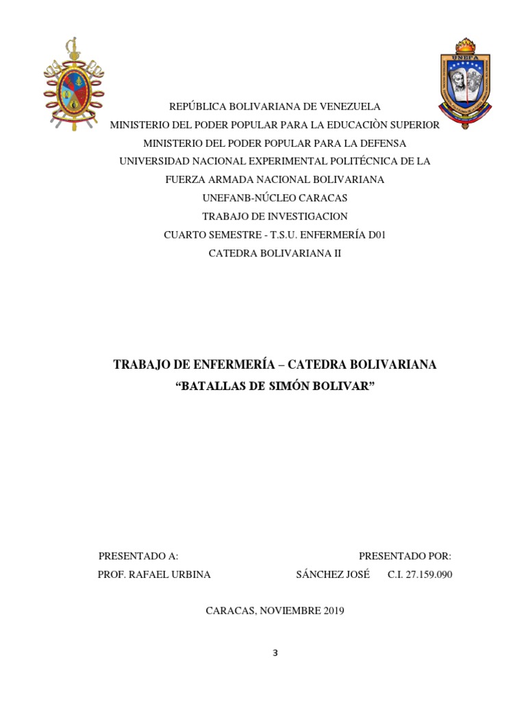 TRABAJO DE ENFERMERÍA – CATEDRA BOLIVARIANA