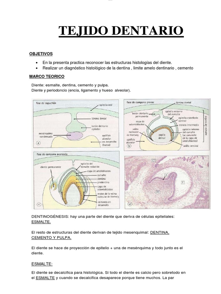 Objetivo : Reconocimiento de las estructuras histológicas del diente
