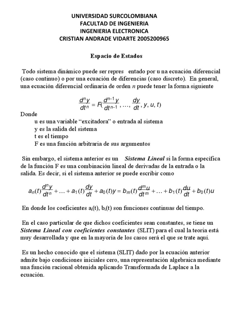 (caso continuo) o por una ecuación de diferencias (caso discreto). En general,