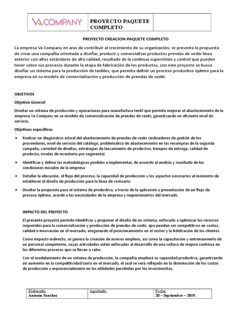 empresa Va Company en su modelo de comercialización de prendas de vestir, garantizando un eficiente nivel de