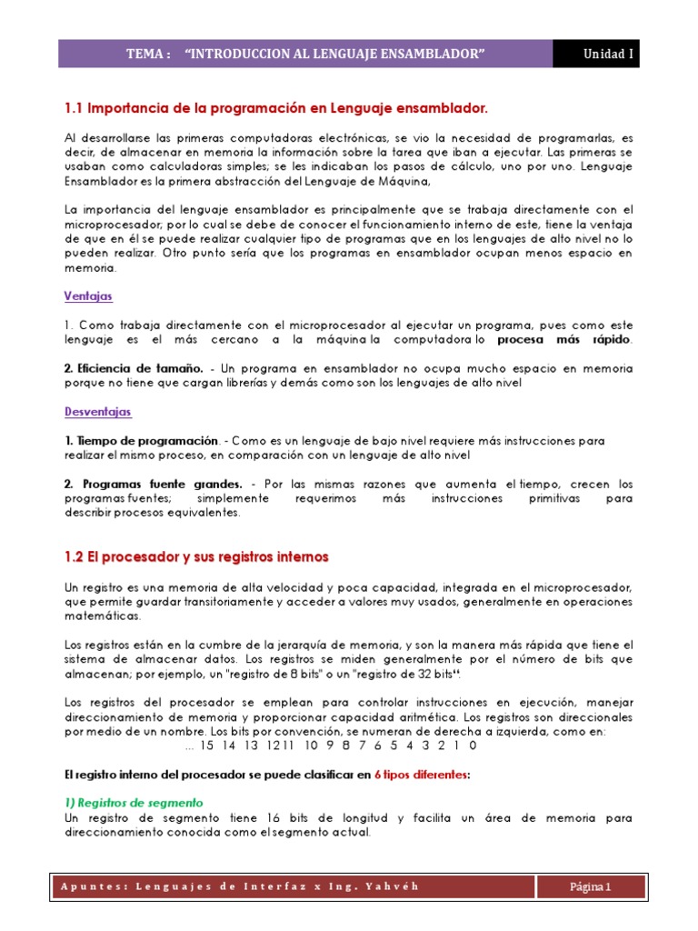 1.1 Importancia de la programación en Lenguaje ensamblador.