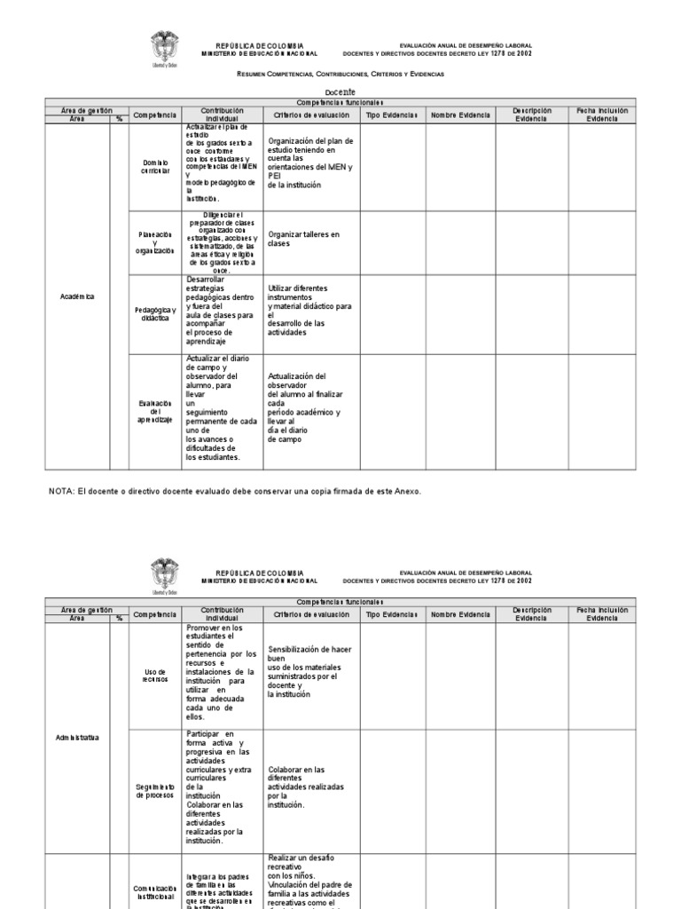 NOTA: El docente o directivo docente evaluado debe conservar una copia firmada de este Anexo.