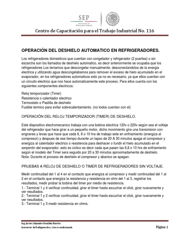 Instructor de Refrigeración y Aire Acondicionado Página 1