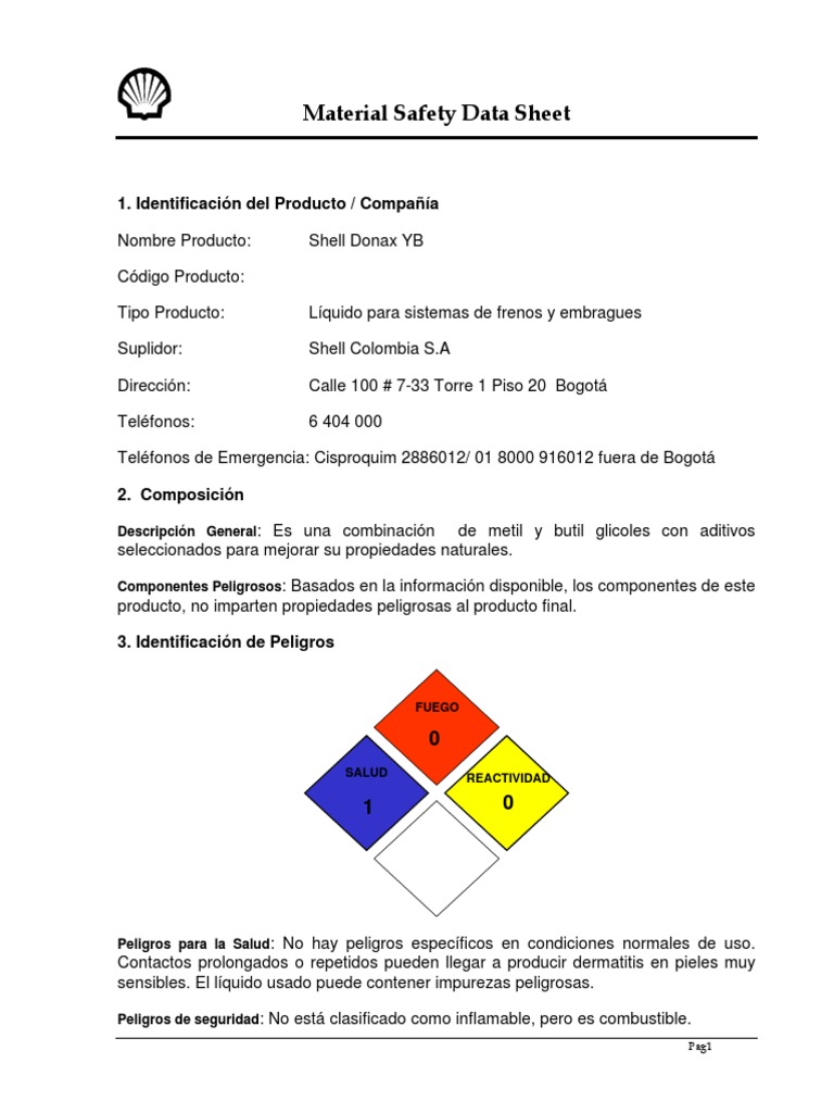 Shell Donax YB para efectos de los requerimientos de salud, seguridad, y medio ambiente. Este documento no