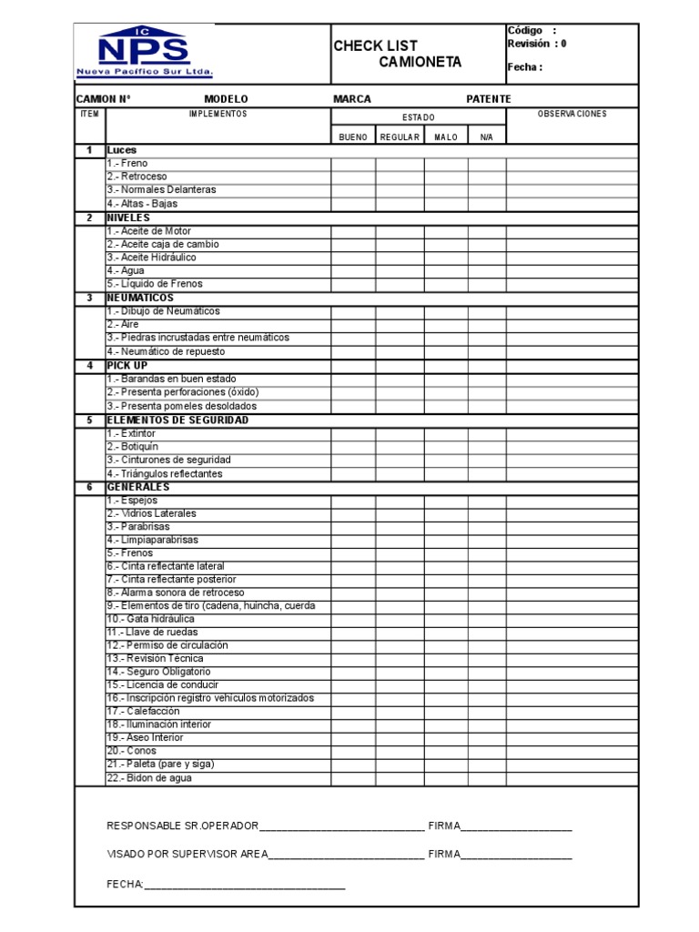 CHECK LIST Revisión : 0