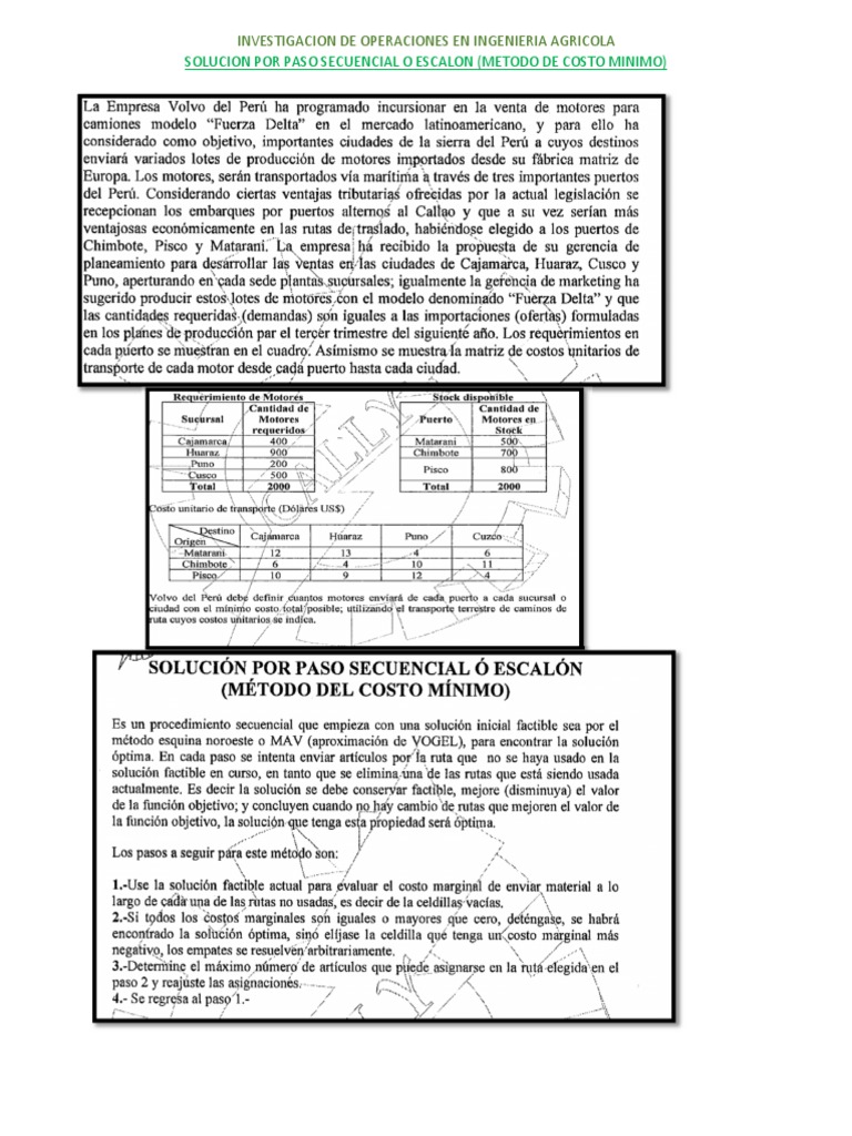 SOLUCION POR PASO SECUENCIAL O ESCALON (METODO DE COSTO MINIMO)