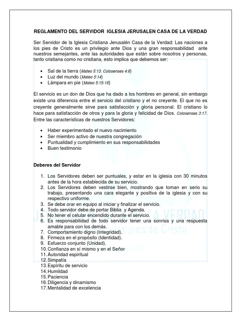 REGLAMENTO DEL SERVIDOR IGLESIA JERUSALEN CASA DE LA VERDAD