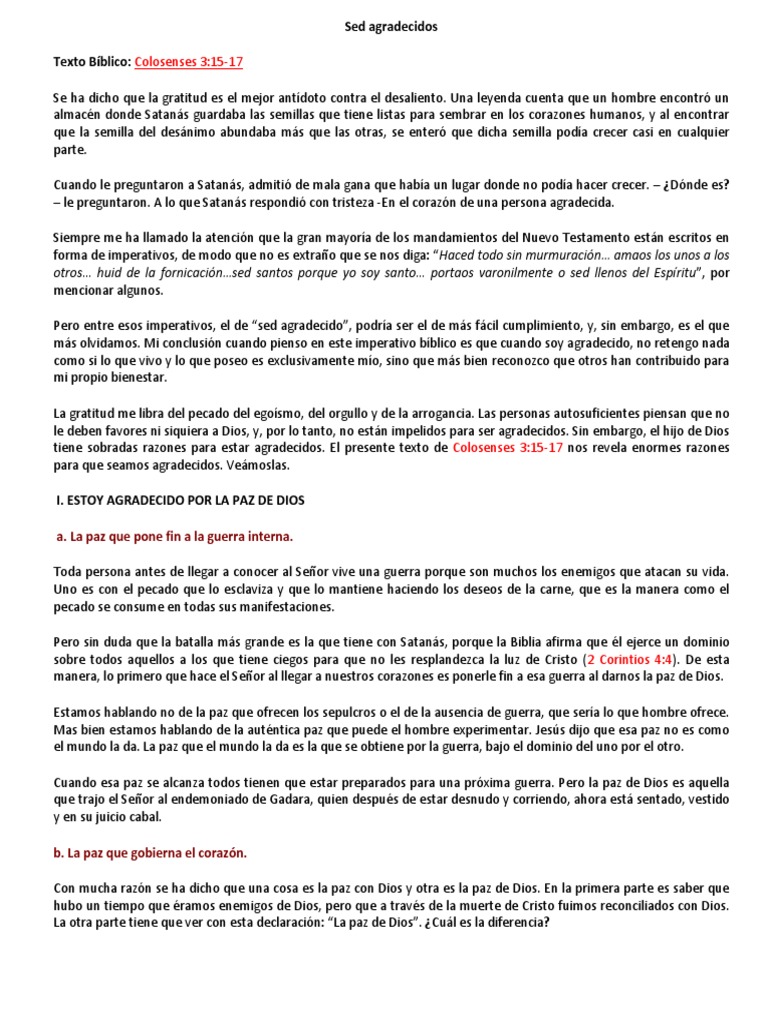 I. ESTOY AGRADECIDO POR LA PAZ DE DIOS