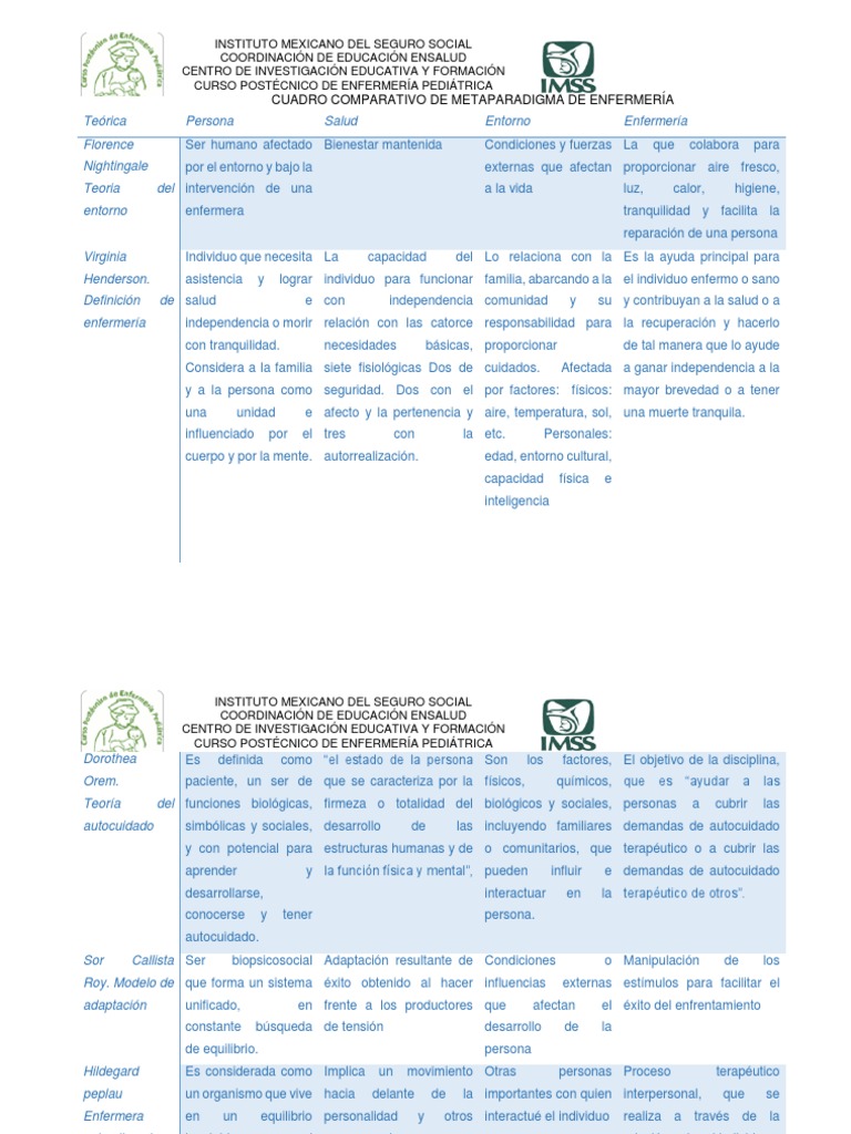 Cuadro comparativo de metaparadigma de enfermería