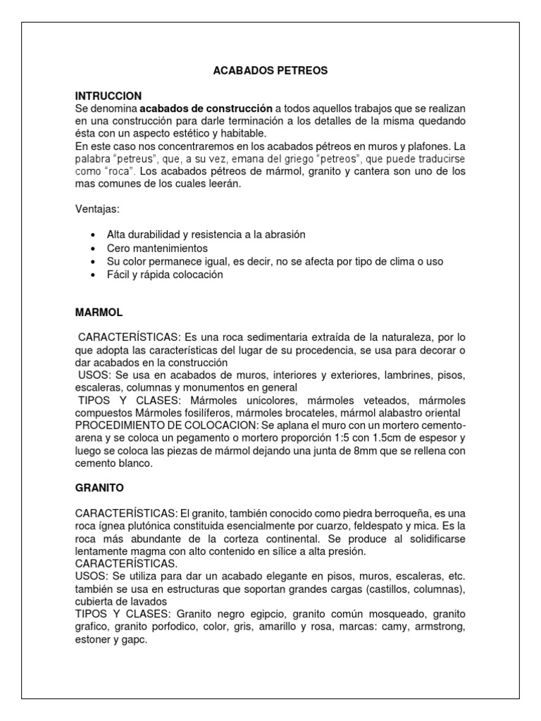 como “roca”. Los acabados pétreos de mármol, granito y cantera son uno de los