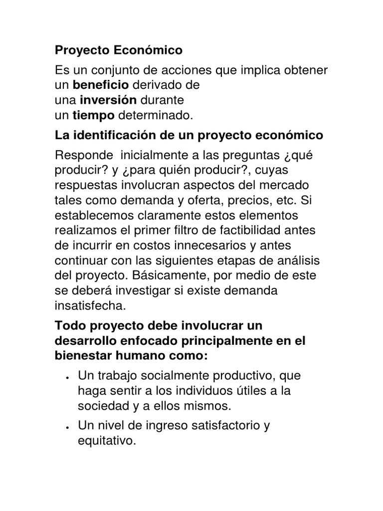 La identificación de un proyecto económico