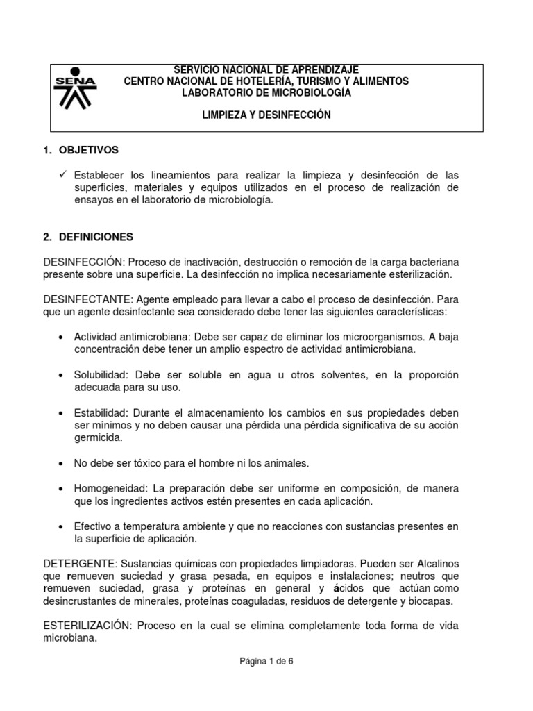 presente sobre una superficie. La desinfección no implica necesariamente esterilización.