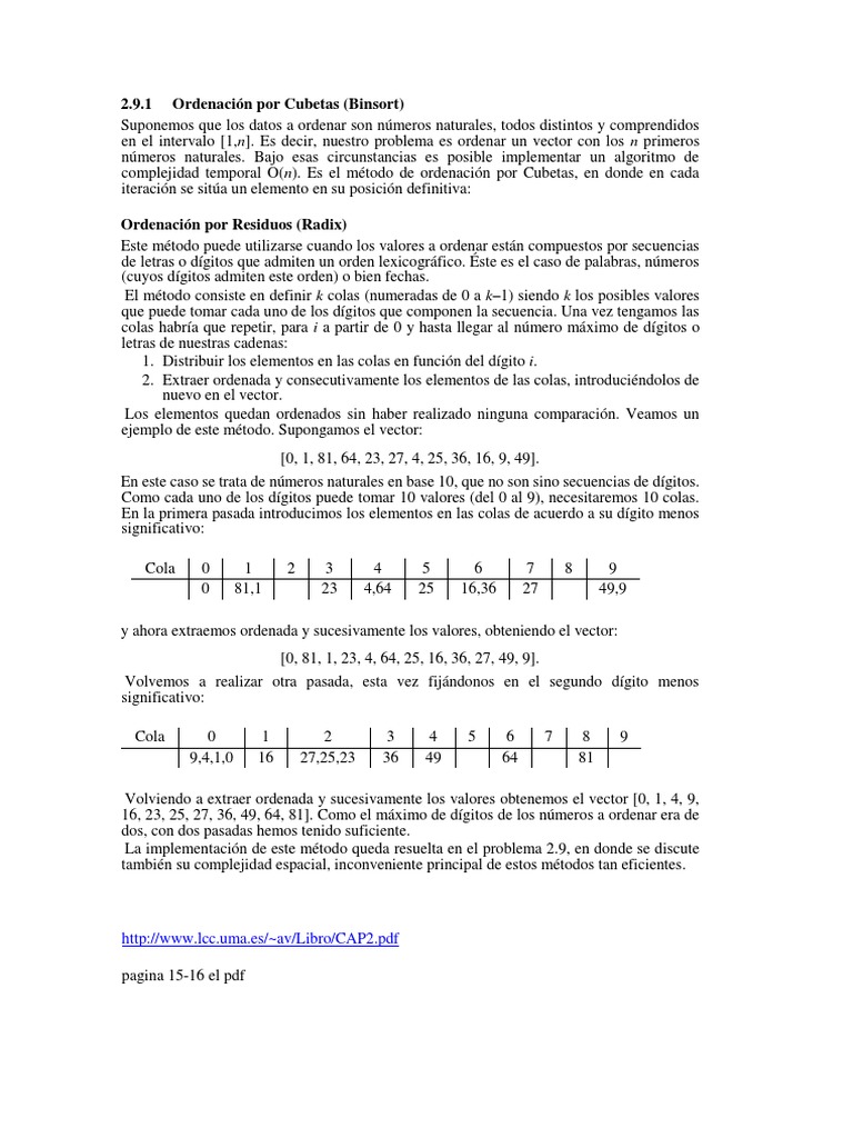 listas. En el caso de que la clave respecto a la que se ordena sea un entero, se tendrán 10