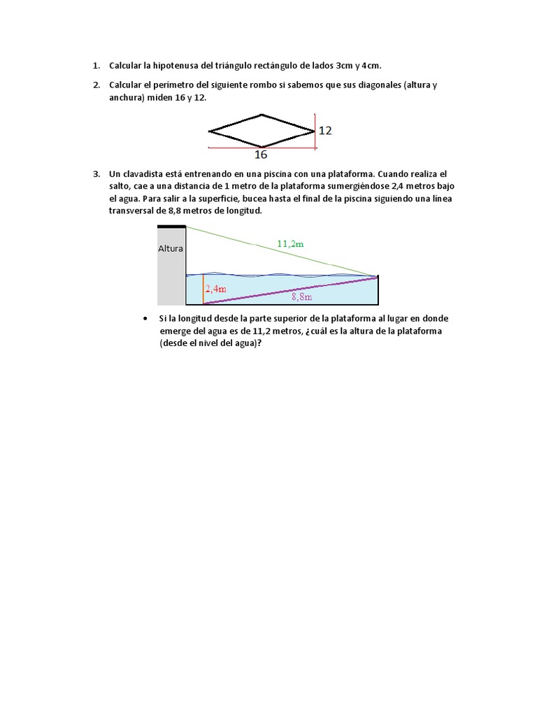 3. Un clavadista está entrenando en una piscina con una plataforma. Cuando realiza el