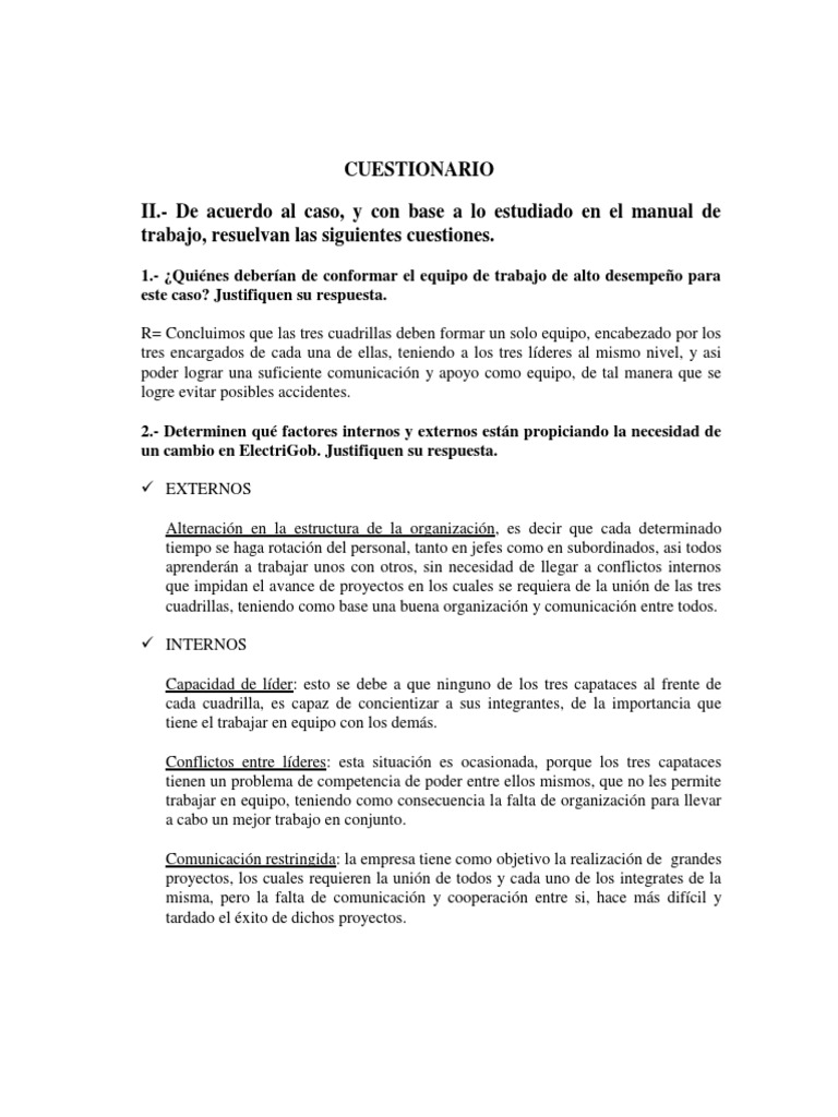 II.- De acuerdo al caso, y con base a lo estudiado en el manual de