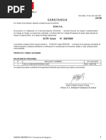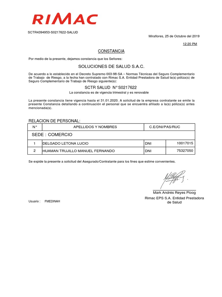 La presente constancia tiene vigencia hasta el 31.01.2020. A solicitud de la empresa contratante se emite la
