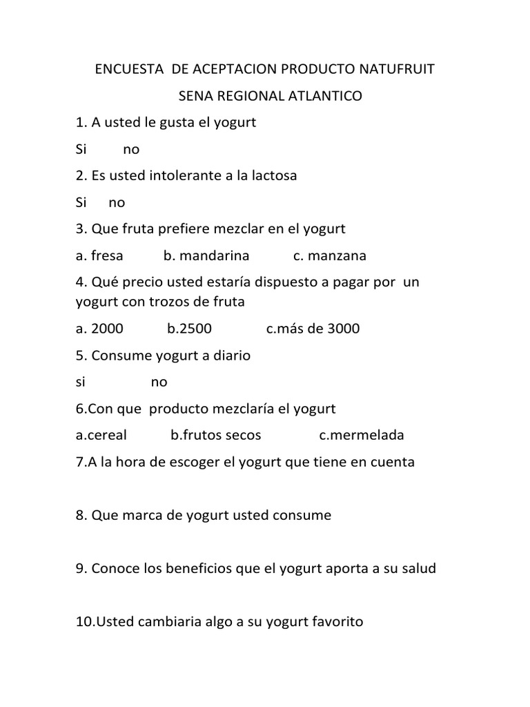 ENCUESTA DE ACEPTACION PRODUCTO NATUFRUIT
