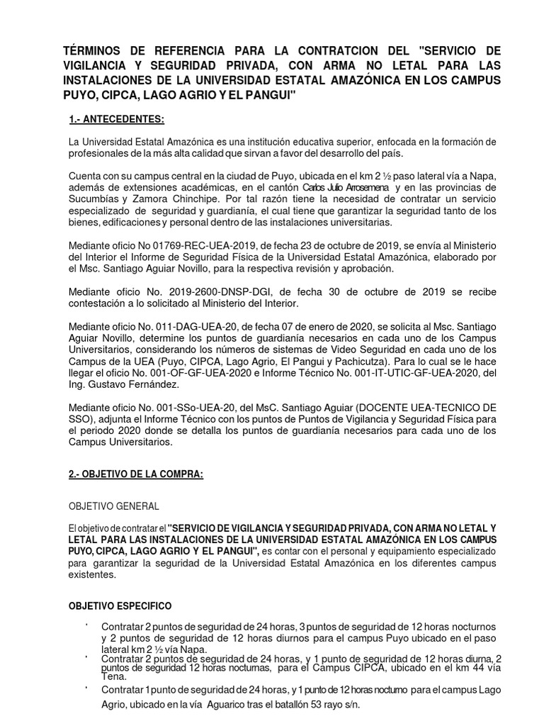 para garantizar la seguridad de la Universidad Estatal Amazónica en los diferentes campus