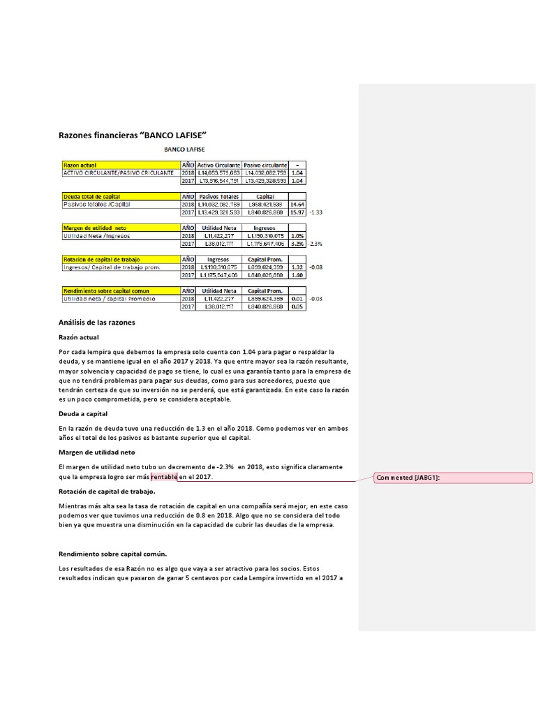 Razones financieras “BANCO LAFISE”