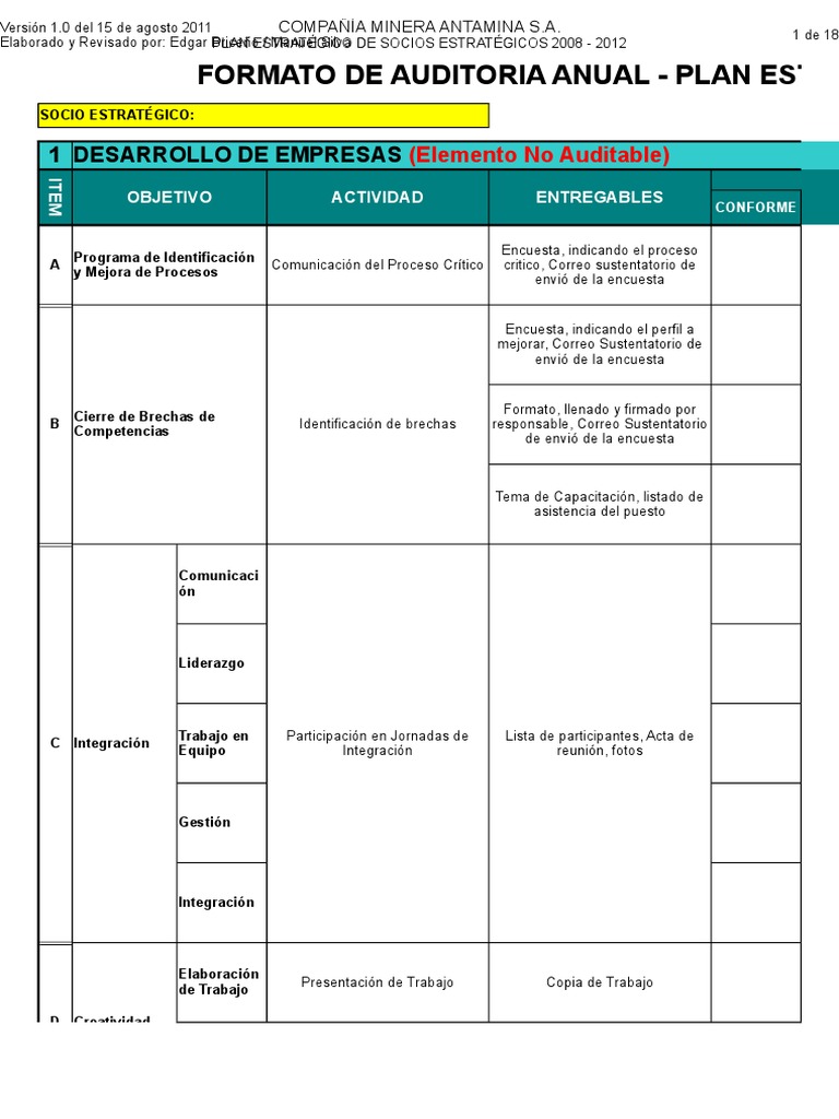 FORMATO DE AUDITORIA ANUAL - PLAN ESTRA