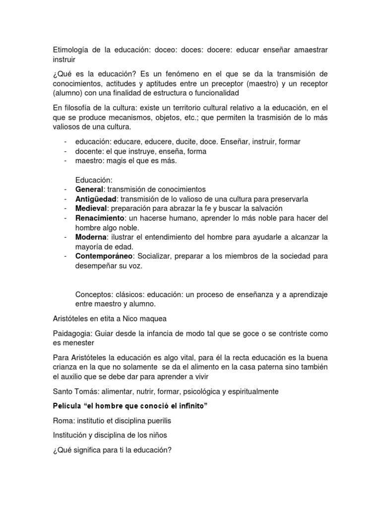 Etimología de la educación: doceo: doces: docere: educar enseñar amaestrar