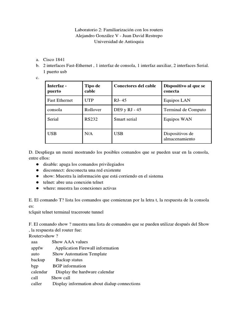 Laboratorio 2: Familiarización con los routers