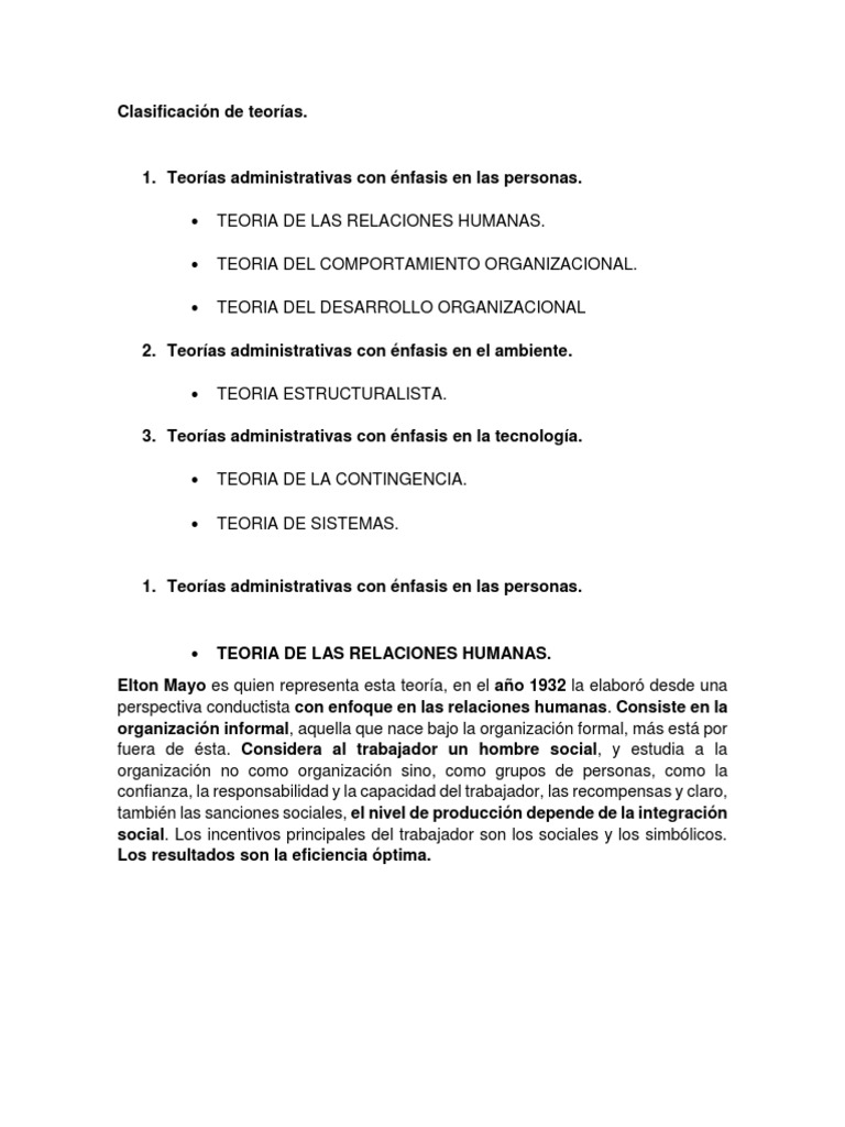 1. Teorías administrativas con énfasis en las personas.