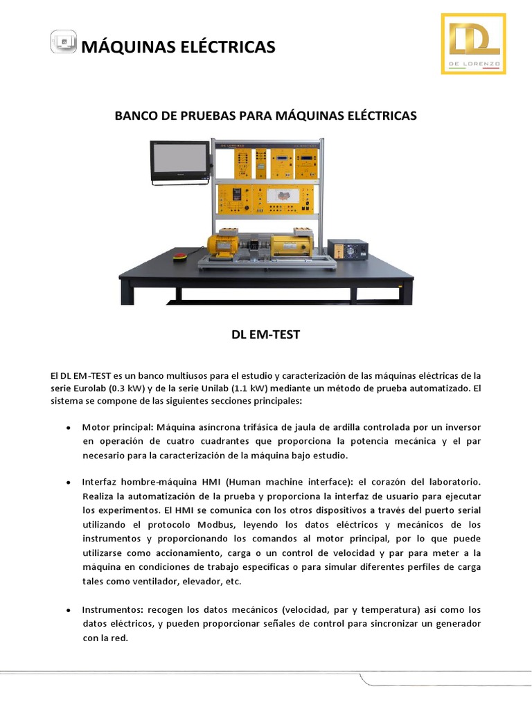 El DL EM‐TEST es un banco multiusos para el estudio y caracterización de las máquinas eléctricas de la