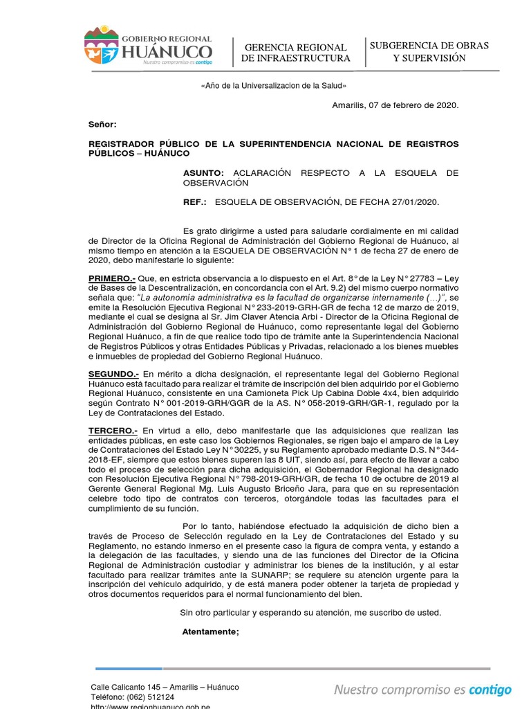 mismo tiempo en atención a la ESQUELA DE OBSERVACIÓN N° 1 de fecha 27 de enero de