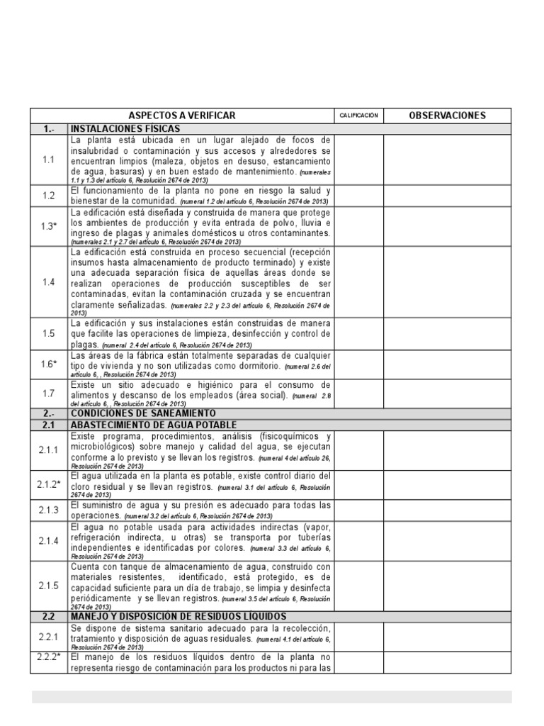 plagas. (numerales 5.2 y 5.3 del artículo 6, Resolución 2674 de 2013)