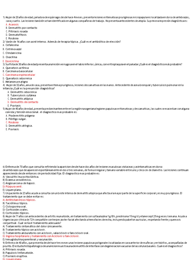 7) Un paciente de 23 años acude a consulta con un brote intenso de dermatitis atopica que afecta a la mayor parte de la superficie corporal y es muy pruriginoso. El