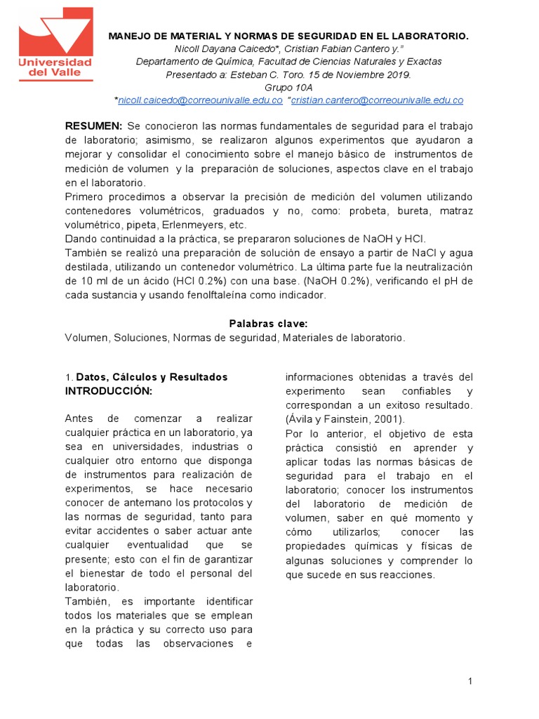 Volumen, Soluciones, Normas de seguridad, Materiales de laboratorio.