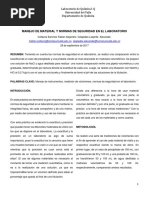MANEJO DE MATERIAL Y NORMAS DE SEGURIDAD EN EL LABORATORIO.