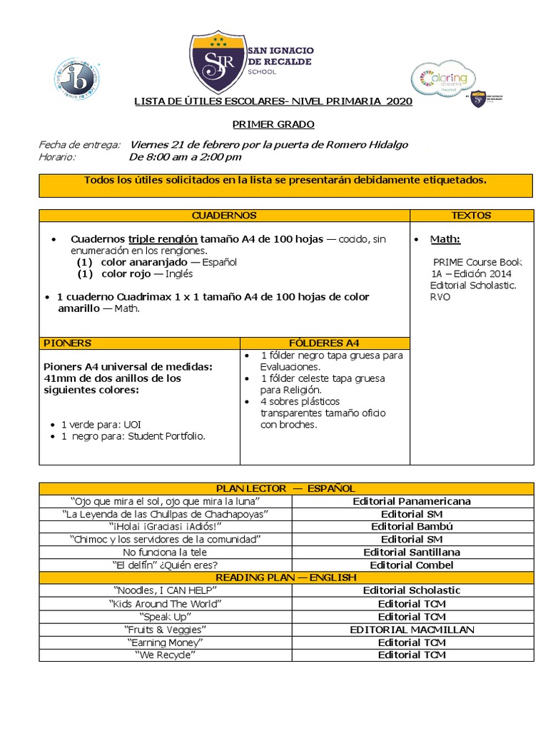 Todos los útiles solicitados en la lista se presentarán debidamente etiquetados.