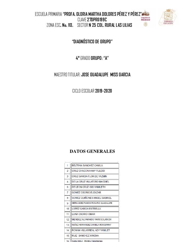 Para el presente ciclo escolar 2019 - 2020 el grupo asignado para atender es el 4to, grupo “B” con una población escolar de 25 alumnos, de los cuales