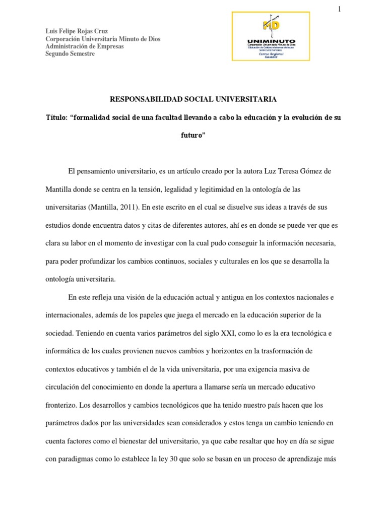 El pensamiento universitario, es un artículo creado por la autora Luz Teresa Gómez de