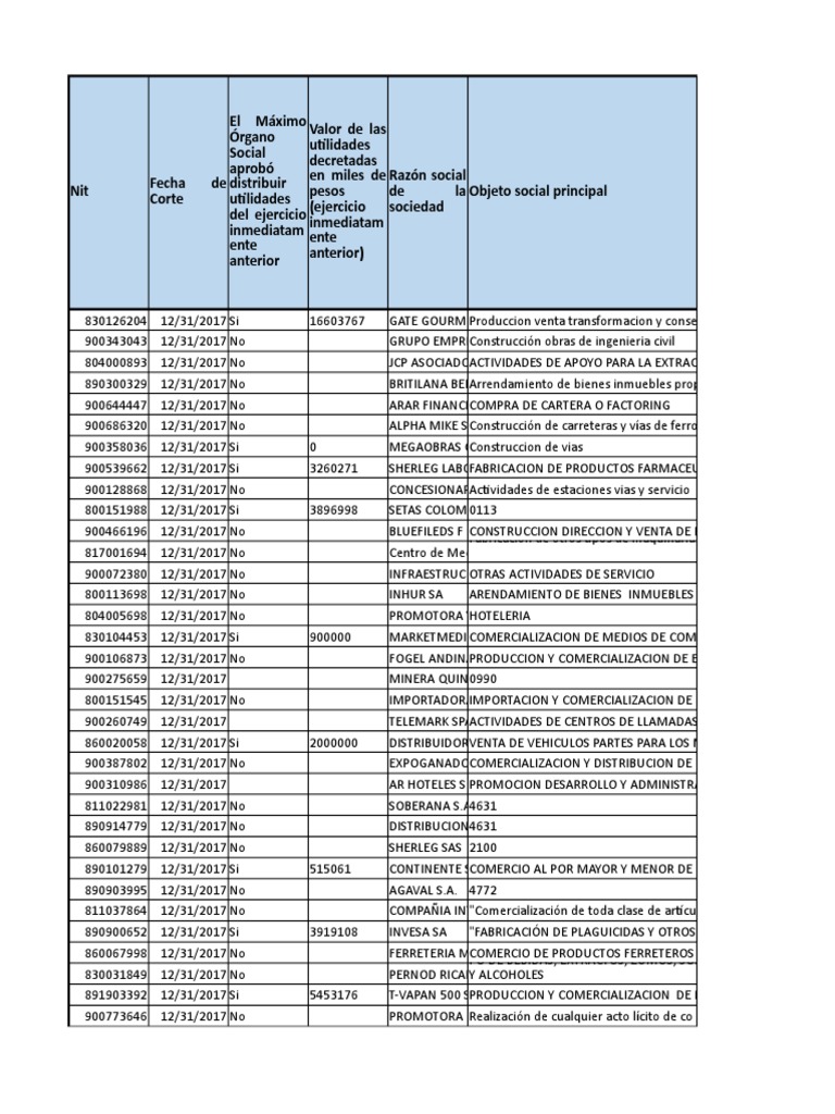 Nit utilidades pesos de la Objeto social principal
