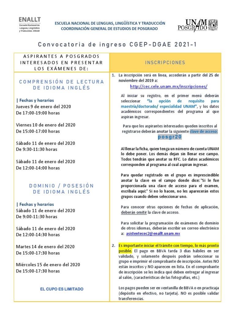 Convocatoria de ingreso CGEP-DGAE 2021-1