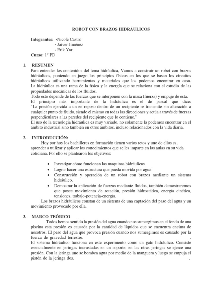 En la realización de un brazo hidráulico implica manejar principalmente los principio de