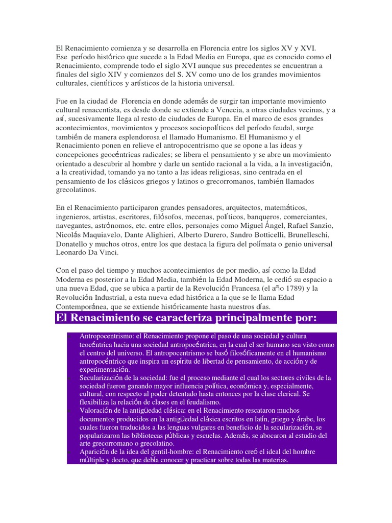 también de manera esplendorosa el llamado Humanismo. El Humanismo y el