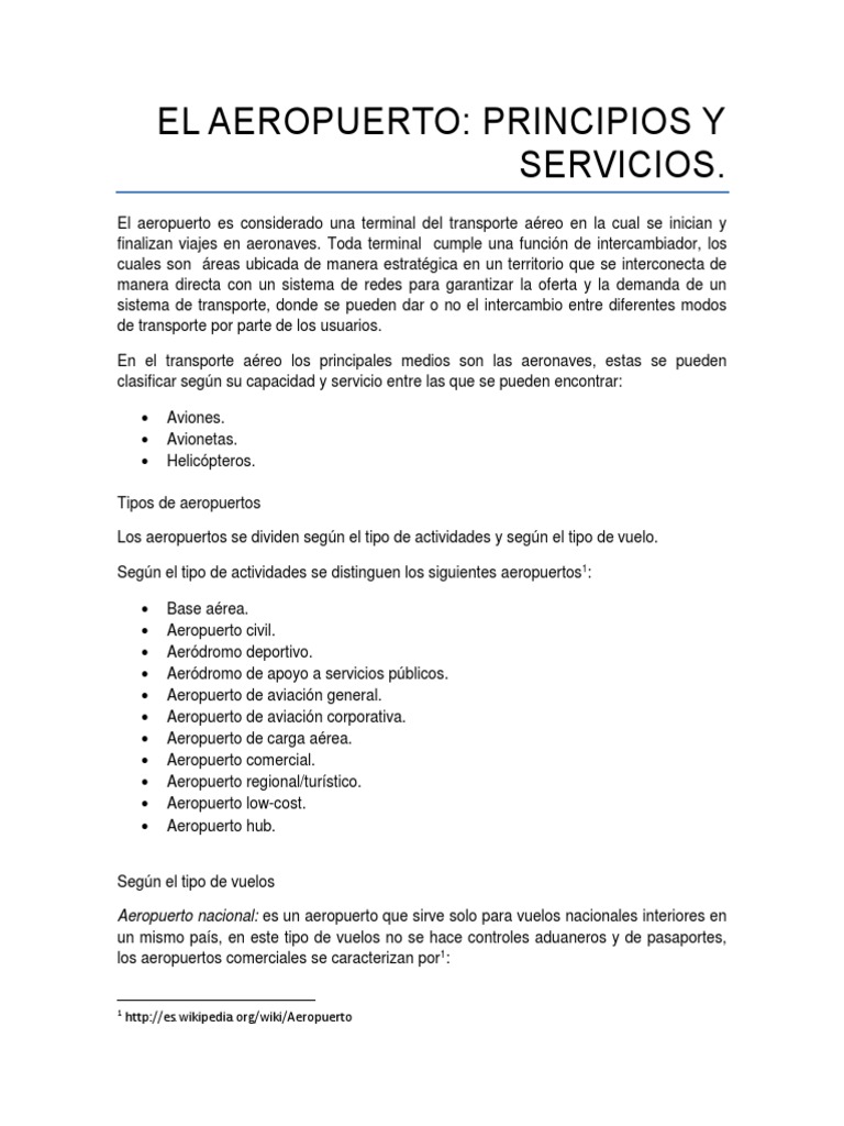 Según el tipo de actividades se distinguen los siguientes aeropuertos1: