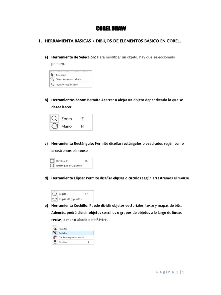 1. HERRAMIENTA BÁSICAS / DIBUJOS DE ELEMENTOS BÁSICO EN COREL.