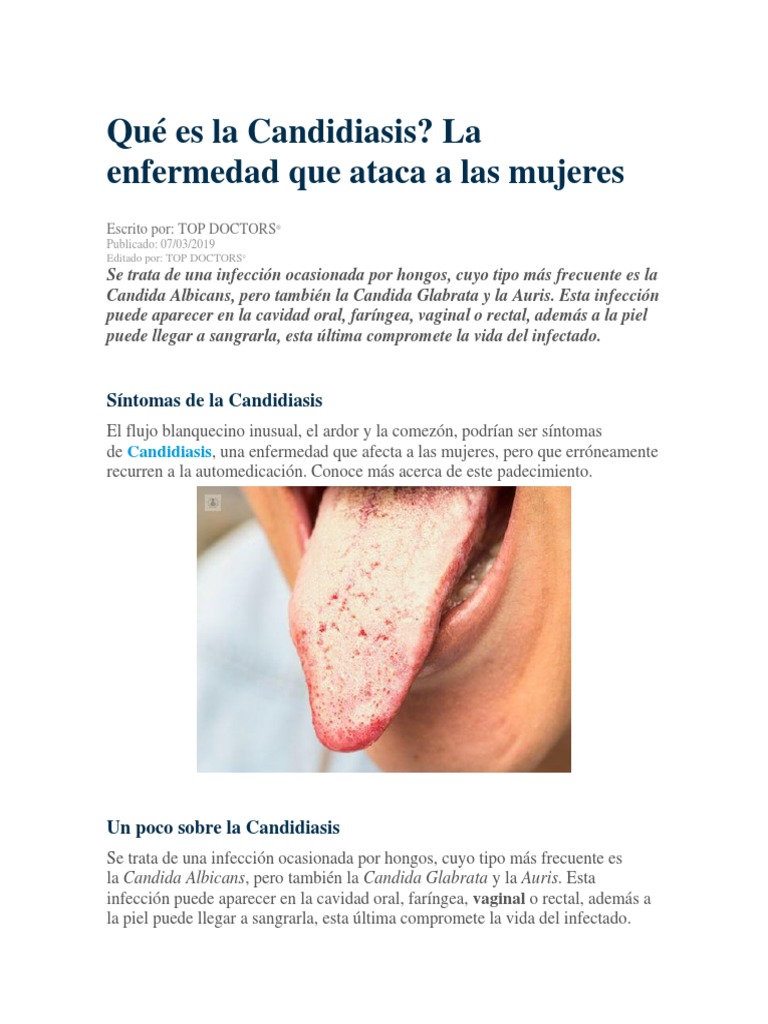 de Candidiasis, una enfermedad que afecta a las mujeres, pero que erróneamente